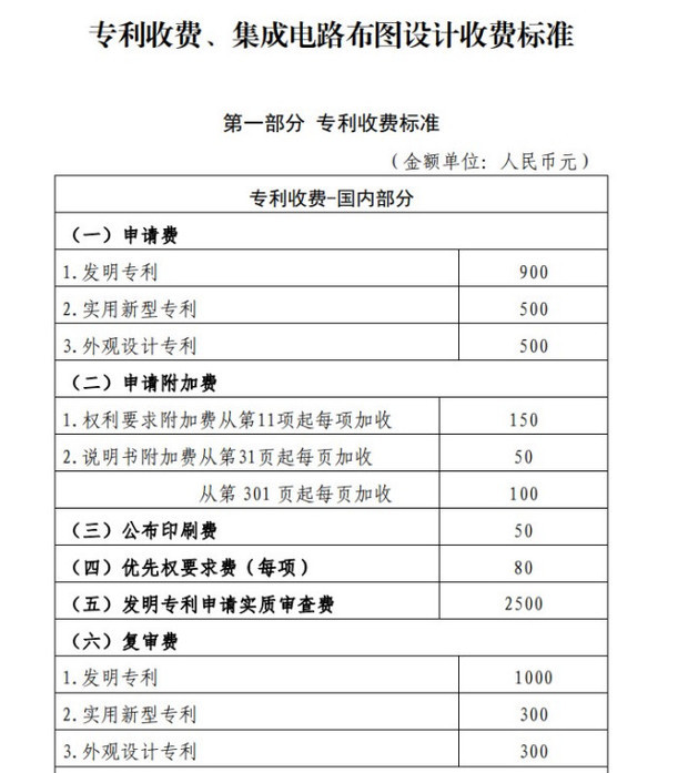 詳細(xì)的繳費(fèi)項(xiàng)目及金額請(qǐng)參見(jiàn)《國(guó)家知識(shí)產(chǎn)權(quán)局收費(fèi)公示》。
