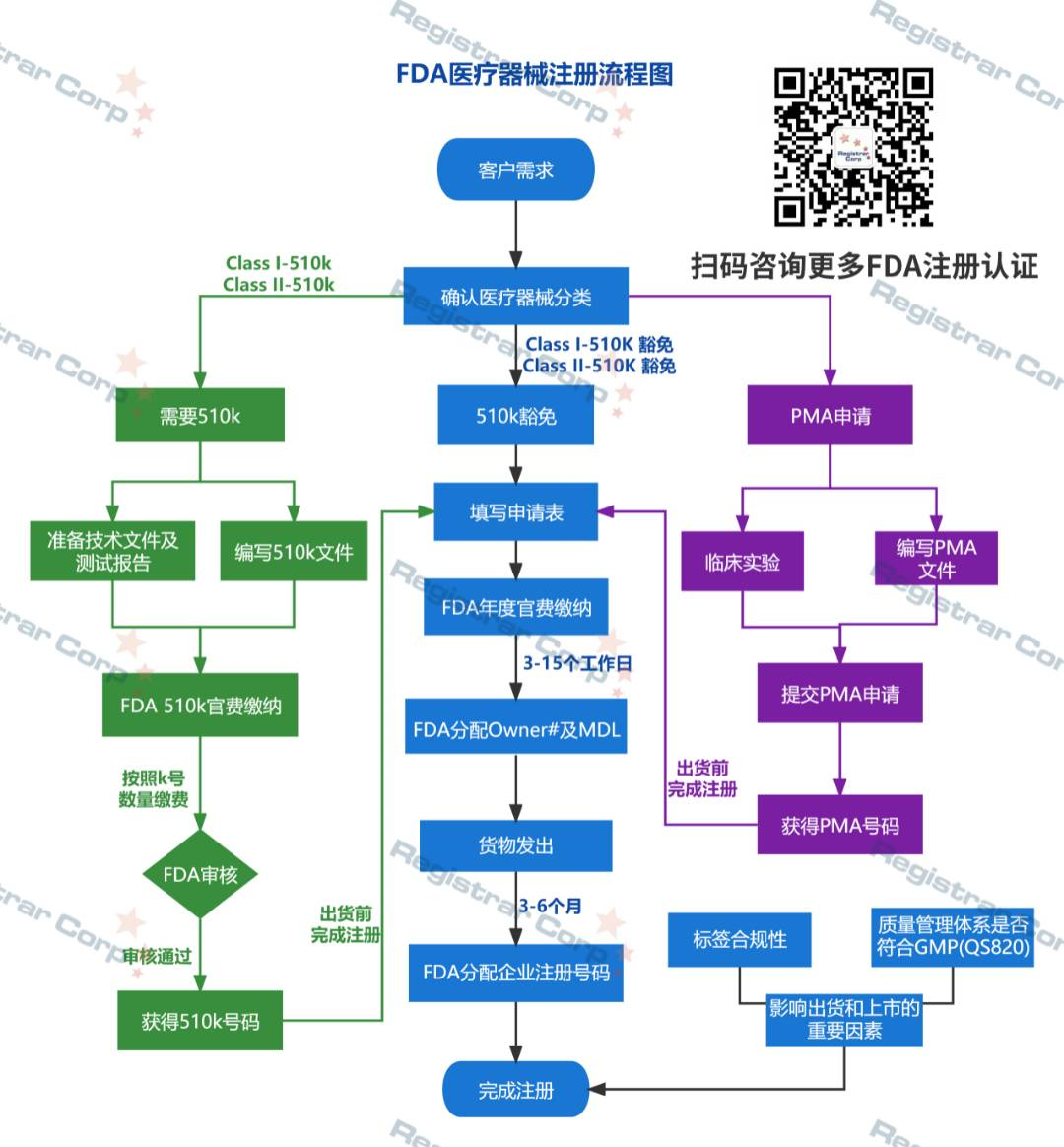 如果是需要510k的產(chǎn)品,則需要在得到510k號(hào)碼之后才可以進(jìn)行注冊。510k(上市前的通知)的申請流程比較復(fù)雜,包含但不限于適用標(biāo)準(zhǔn)及檢測項(xiàng)目、同類產(chǎn)品對比輔導(dǎo)、編寫技術(shù)文件、向FDA申報(bào)并交納510k號(hào)碼申請的官費(fèi)(每年費(fèi)用不一樣,2022年是12,745美元)。FDA審評(píng)完成無誤之后,確認(rèn)產(chǎn)品的風(fēng)險(xiǎn)等級(jí)和目前美國市場上的同類產(chǎn)品風(fēng)險(xiǎn)等級(jí)保持一致后,即可分配510k號(hào)碼。拿到510k號(hào)碼之后,和上一種情況一樣,再進(jìn)入FDA醫(yī)療器械在線注冊系統(tǒng)申請賬戶并進(jìn)行繳費(fèi)注冊;
