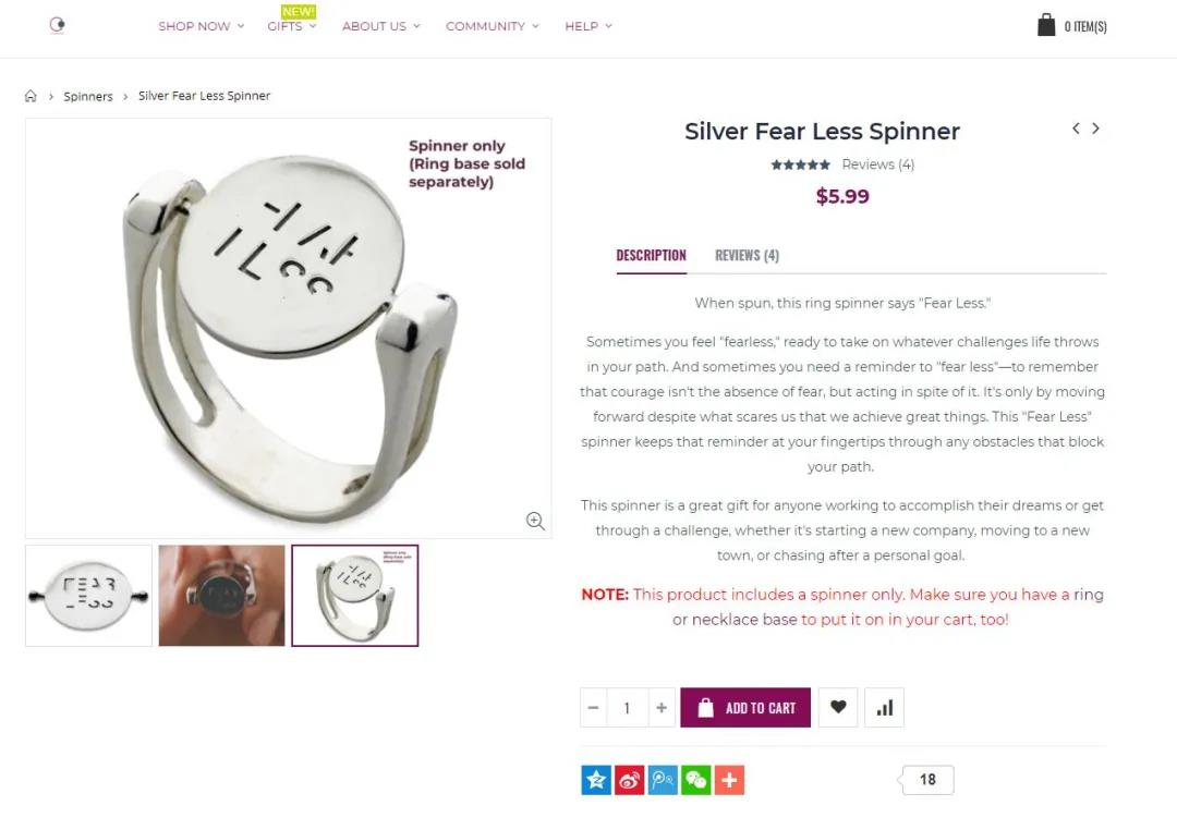 此款解壓戒指來自 TIKTOK 博主的引流獨(dú)立站(myconquering.com),目前售價(jià)5.99美金。